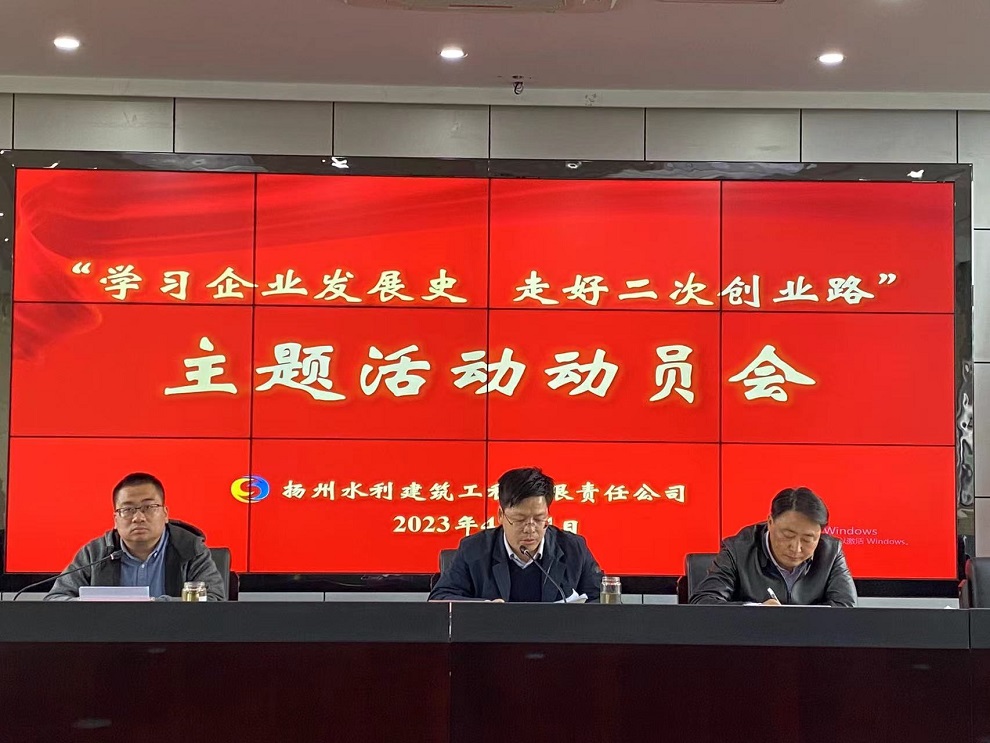 4月24日上午,乐鱼官方网站召开“学习企业发展史走好二次创业路”主题活动动员会。公司党支部书记、董事长出席会议并作动员讲话。公司班子成员,各部室、扬州分公司、各在扬项目部负责人和本部全体员工参加会议。