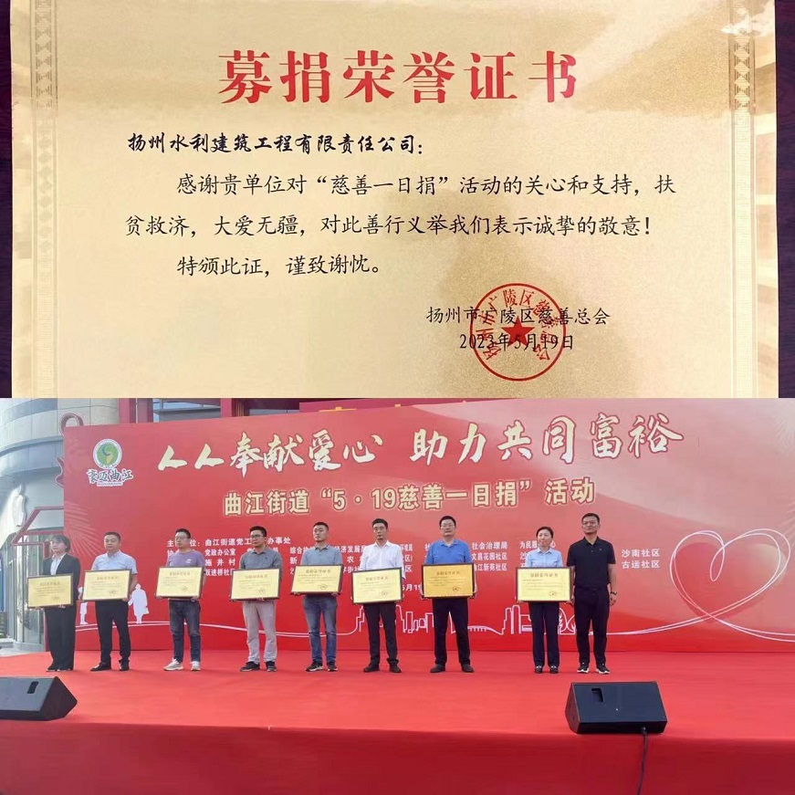 【概要描述】5月19日,乐鱼官方网站助力曲江街道跃进桥社区“慈善一日捐”活动,获赠“募捐荣誉证书”。 服务社区、传递正能量一直是扬水建公司积极主动承担的社会责任,是常态化长效化开展“我为群众办实事”实践活动的具体体现。下一步,公司将持续聚焦群众所需所求,痛点难点问题,主动为群众排忧解难,营造“人人奉献爱心助力共同富裕”的良好氛围,以实际行动践行社会责任,彰显国企担当。