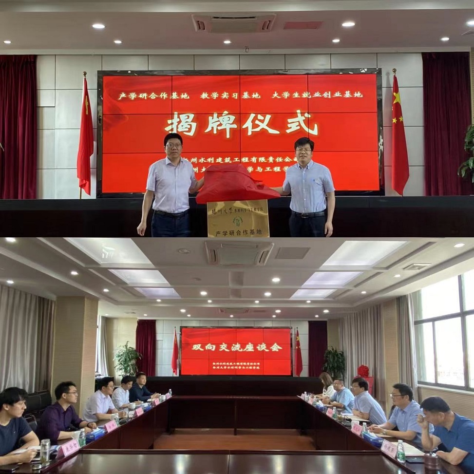 在双向交流后,公司与扬州大学水利学院代表共同签署产学研合作协议,并举行“产学研合作基地”、“教学实习基地”、“大学生就业创业基地”揭牌仪式。