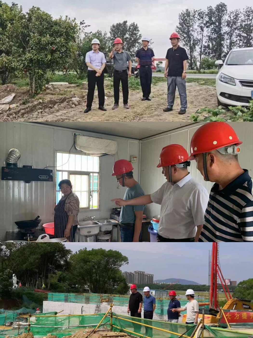检查组一行先后来到扬州市长江防洪能力提升堤防加固一期工程(江都区)施工II、Ⅴ标、 扬州大学现代农业科教示范园区二期工程项目(农田水利工程)施工标、江都区江桥片区水系调整工程施工Ⅰ标、无锡马圩2号站项目等工程现场,向端午节期间坚守岗位的一线职工表示亲切的慰问,详细了解工程项目内容、施工进度、计划完工时间、施工队伍、节假日施工安排等情况,检查组深入到施工现场,对脚手架搭设情况、安全防护措施、食堂燃气安全使用、报警器和切断阀的安装等情况进行详细检查。在公司跃进桥危房现场,检查组对设立的警戒线、围挡、安全标识、监控等防护措施进行了逐一排查,对检查过程中发现的隐患问题,向现场负责人逐一指出,并要求限期整改,及时消除安全隐患,确保安全使用。