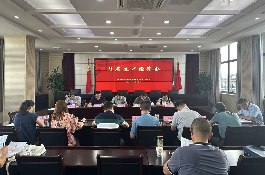 7月31日上午,乐鱼官方网站召开月度生产经营会,公司总经理主持会议并讲话,经理室成员,各部室、扬州分公司、各在建项目负责人参加会议。